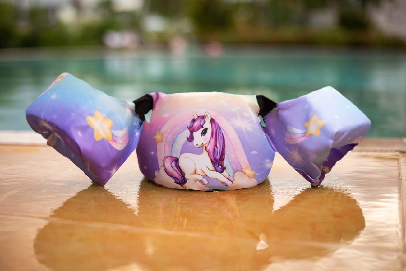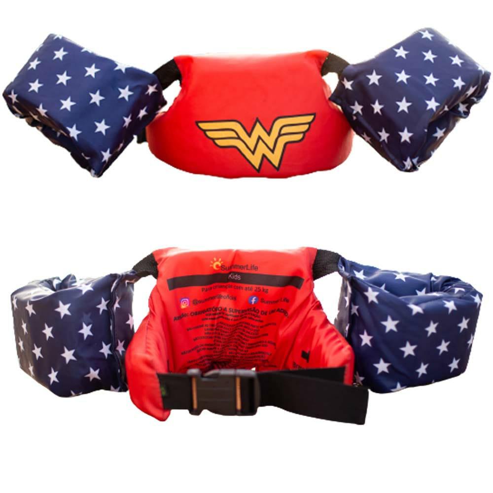 Ele tem um design prático, confortável e super seguro! Tudo que uma criança precisa para sentir confiança nas primeiras experiências na piscina ou na praia!
